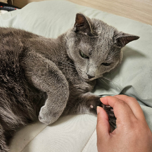 다리와 발은 고양이의 움직임과 균형을 유지하는 중요한 부위이다. 만지는 것에 대해 예민한 고양이도 있으며 불안감을 느낄 수 있다.